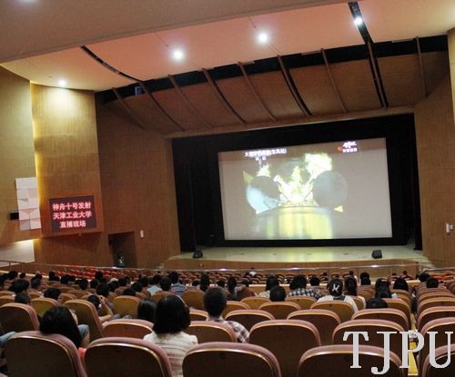 我校师生在艺缘活动中心礼堂全程观看神舟十号载人飞船发射过程