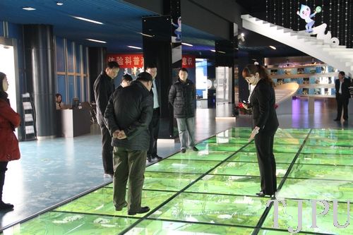 挂牌仪式结束后,环化学院领导在节水科技馆馆长的带领下进行了参观。展区内运用主题幕墙、玻璃透视屏、LED高清视屏等多种现代手段,展示了天津的水系分布,更是将水雾、水的表面张力、漩涡原理、水与减震等物理原理生动形象的体现出来。通过演示日常生活中洗衣、洗澡、洗菜等不同的用水量的变化,真切地体会节水的重要性,重点介绍了天津节水立法和管理制度的建立、节水技术的使用情况。