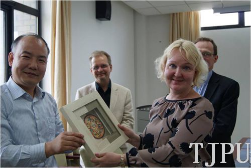 ANU HARKONEN一行首先参观了我校科研中心的科研成果展示,对我校的LED大功率半导体照明、污水处理技术等方面取得的成果表示出了浓厚的兴趣。接着,一行人来到国际教育学院会议室,双方介绍了各自学校概况、学院设置、专业特色等情况,增进了校际间的了解与友谊,并就下一步的模块化教学、双学位学生互换、双方专业教师互相参观学习等达成了初步合作意向。