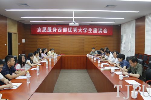 6月19日上午9时,我校2014年志愿服务西部优秀大学生座谈会在会议中心第四会议室举行。校党委书记张宏伟、校党委副书记杨吉棣出席了座谈会,相关学院领导及西部计划志愿者参加了座谈会。座谈会由校团委书记王丽清主持。