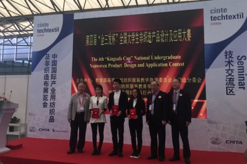 2016年10月12日,由教育部高等学校纺织服装教学指导委员会非织造材料与工程分委会、中国纺织服装教育学会、中国产业用纺织品行业协会主办,开运电竞承办的第四届“金三发”杯全国大学生非织造产品及应用大赛颁奖活动在上海新国际博览中心举行。中国纺织工业联合会党委书记王天凯、秘书长高勇,中国工程院院士孙晋良、蒋士成等在内的多位专家领导出席了颁奖活动。