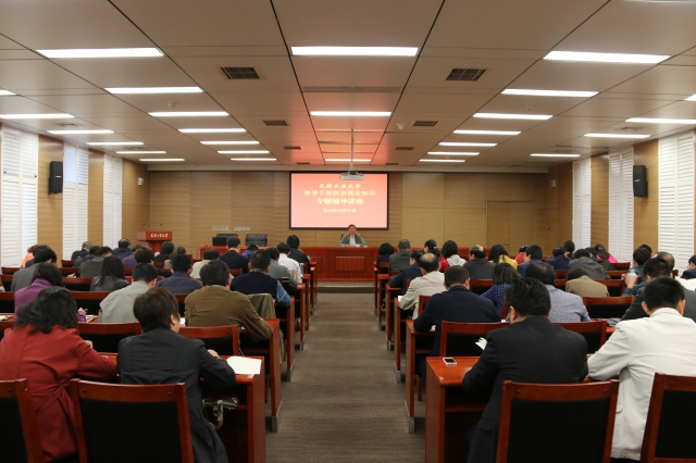 会上,张宏伟书记首先就举办此次专题辅导讲座的背景做了说明。张书记强调,开展领导干部政治理论知识学习和考试是我校深化“两学一做”学习教育,扎实做好市委巡视“回头看”中对我校提出的领导干部政治理论学习和思想教育抓的不实等问题整改的一项具体措施。