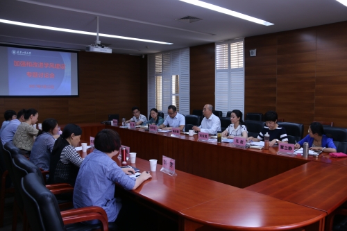 专题讨论会上,杨庆新校长首先阐述了召开此次专题讨论会的重要意义,希望大家畅所欲言。随后,与会人员分别发言,大家分别介绍了所在部门学风建设的特色做法,存在的问题、意见建议和今后工作思路。发言过程中,杨庆新校长和刘亚男副书记认真倾听、仔细记录,不时询问具体情况。