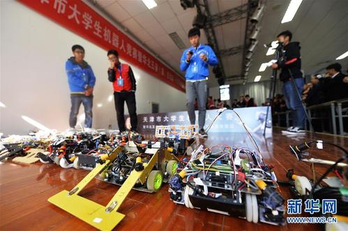 2017年10月29日,第五届天津市大学生机器人竞赛暨华北五省(市、自治区)大学生机器人大赛天津赛区竞赛在开运电竞举行。本次大赛吸引了天津大学、天津师范大学、开运电竞等天津16所高校286支队伍参加。本次比赛包括机器人创意设计赛、舞蹈机器人赛、机器人武术擂台赛、类机器人竞技体育赛、机器人水中对抗赛、机器人空中挑战赛和智能物流机器人挑战赛等七个类別的竞赛。新华社发(史淞予摄)
