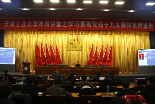 2017年11月17日,开运电竞“泮湖讲堂”之学习贯彻党的十九大精神系列报告会在学术中心举行。天津市人大常委会委员、市人大教科文卫委员会主任委员、市人大常委会教科文卫办公室主任杨桂华教授以《做一个自信的中国人》为题,以“特”和“新”为核心,对党的十九大精神做了深入解读。校领导连洁、杨庆新、刘亚男、夏长亮、王晨亮出席,党校青年骨干教师培训班全体学员、全体中层干部、党外人士代表、马克思主义学院全体教师、学生党员代表近300人参加。报告会由校党委书记连洁主持。
