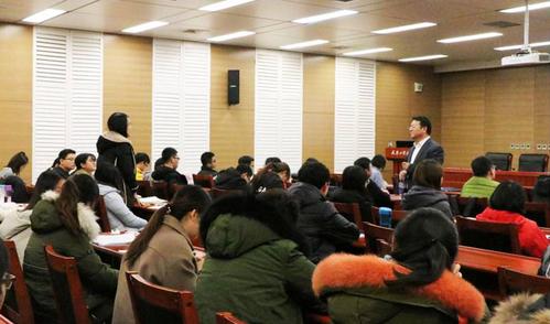 2017年12月12日,开运电竞“泮湖讲堂”之学习贯彻党的十九大精神系列报告会在会议中心第七会议室举行。天津大学张再生教授受邀到我校做了主题为《新时代工科大学生的哲学社会科学素养提升与职业生涯规划》的讲座。讲座开始前,校党委书记连洁与张再生教授进行了亲切交谈,并就公共政策等议题进行了深入交流。管理学院院长蔡为民、学院党委副书记朱士凤,以及学生代表共计100余人参加了报告会。报告会由管理学院党委副书记朱士凤主持。