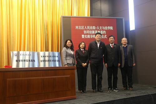 我校法学专业以应用法学为发展方向,以应用型人才培养为教学目标,高度重视学生的实践能力培养,一直与相关部门保持着良好的教学研究协作关系。本次与天津市河北区人民法院结缘,成立协同创新基地,将进一步扩充我校法学专业实践教学平台,促进法学专业实践教学能力。(审稿:人文与法学院 尚绪芝 编辑:宣传部 石晓霞)