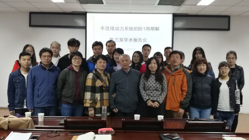陈兰荪教授主要介绍了脉冲系统、阶一周期解、后继函数以及切换系统等基本概念,并结合图像进行说明;指出半连续动力系统的相关性质和研究方法,首次提出了阶一周期解的分类,提出了单向接近凸闭阶一周期解的存在和稳定性的判定方法以及这种系统区别于一般“连续动力系统”的特殊性质。会后陈兰荪教授同与会师生详细讨论了所讲内容。学术报告会气氛热烈,讨论活跃,与会的广大师生受益匪浅。本次报告会对我校师生的学习和工作提供了很好的帮助,加强了学术交流,营造了良好学术氛围。