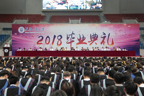 在同学们的热切期盼中,杨庆新校长亲切致辞,他首先对即将踏上人生新征程的毕业生表示祝贺,对各位辛苦付出的教师表示感谢,对43名留学生克服语言障碍,不远万里来我校求学并完成学业的精神表示赞赏。杨庆新校长期望同学们不断奋斗、不断奉献、不断学习。他勉励毕业生在今后的工作中要为梦想打拼,将自己的梦想与中国梦相结合,与国家共同发展。他希望同学们明辨是非、不断学习,在知识的海洋中汲取营养,让自己的人生更加辉煌。母校永远是各位学子的港湾,欢迎大家常回家看看,共同为我校的发展贡献自己的力量。同学们用掌声中表达了对学校、老师、同学的感恩和不舍之情,也彰显了天工大学子对未来的无限憧憬和信心。