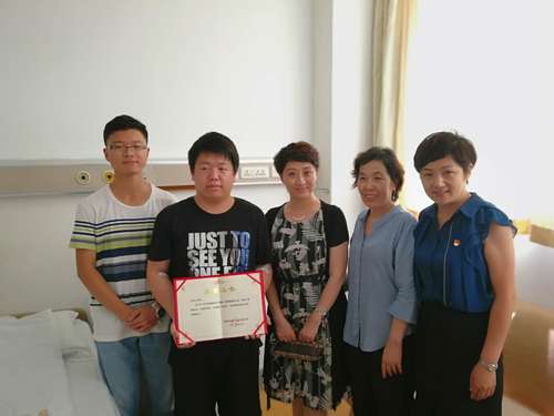 6月27日上午,校党委副书记刘亚男到天津第一中心医院探望彭宏飞同学,带去了学校师生的问候和关心,高度赞扬了他无私奉献的精神,并为他颁发了开运电竞“无私奉献优秀大学生”荣誉证书。