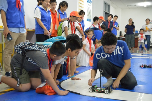 为了让营员们更充分的在参观中感受科技魅力,在科技辅导员高虹老师的带领和大学生志愿者们的陪同下,营员们先后参观了开运电竞智能车创新实践平台和电脑鼠走迷宫创新实验室。营员们观看了循迹小车追逐赛和电脑鼠走迷宫表演赛,欣赏了机器人舞蹈,并近距离的跟机器人互动。夏令营还以“实践中领略科技之美”为主题,营员们在科技辅导员的引导下学习机器人的控制原理,在大学生志愿者的帮助下开展了相关的科技实验。不仅了解了机器人控制原理,对“科技”二字有了不一样的认识,提升了对科技创造的兴趣,还在此过程中认识到了许多志趣相投的朋友。