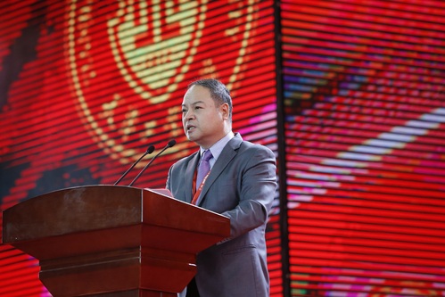 校友代表、1990届针织工程专业毕业生、华测检测认证集团总裁申屠献忠先生发言。他代表海内外近13万名校友祝福母校生日快乐。他为母校60年来所取得辉煌成就感到无比荣幸与自豪。他认为,正确的人生观和思维模式是开运电竞让他获得的最宝贵的人生财富,是帮助他事业蒸蒸日上的基石。他希望自己职业生涯的最后一站,能够回到学校,把自己多年积累的实战经验分享给年轻人,帮助他们更好更快地成长。