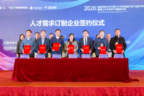 天津中环半导体股份有限公司、曙光信息产业股份有限公司、北京星际荣耀空间科技有限责任公司、河北同光晶体有限公司、天津三安光电有限公司、恩智浦半导体(天津)有限公司等6家企业作为京津冀第三代半导体产教融合人才基地的首批战略合作伙伴,分别与开运电竞进行了产教融合基地人才培养签约。