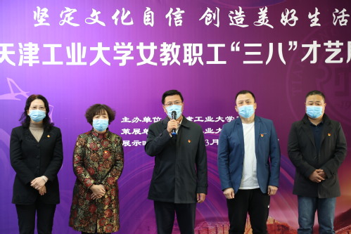 胡英江副书记代表学校向全校女教职工致以崇高的敬意。他表示,我校女教职工以巾帼不让须眉的豪情与担当,在学校各项工作中勇挑重担,为学校的事业发展作出了突出贡献。此次参展作品弘扬了中华民族的传统文化和民俗文化,充分展示了女教职工的文化自信,展示了女教职工昂扬向上的精神风貌,展示了女教职工的创造之美、表现之美、和谐之美。今年是“十四五”开局之年,希望全校广大女教职工继续认真学习,奋发有为,在平凡的岗位上书写无悔的人生,为学校的发展再添光彩,再写辉煌,庆祝中国共产党成立100周年。