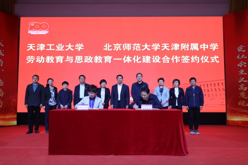 党委学工部(研工部)部长王丽清首先致辞。她详细介绍了两校合作背景和内容。接着,北京师范大学天津附属中学副校长张晓与王丽清部长共同签署了劳动教育、思政教育一体化建设合作协议。最后,杨伟云校长致辞,展望了双方合作前景。