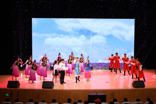 由经济与管理学院学生党支部带来的《金色进疆路 融汇民族情》,完美演绎了天工支教团与库尔班大叔的美丽邂逅,在历史长空的握手中,激发了全体师生铸牢中华民族共同体意识的决心和共鸣。少数民族学生代表演唱《在灿烂的阳光下》《唱支山歌给党听》,真心歌颂党、讴歌中华各族儿女像石榴籽一样紧紧拥抱一起,同心筑梦的时代画卷!