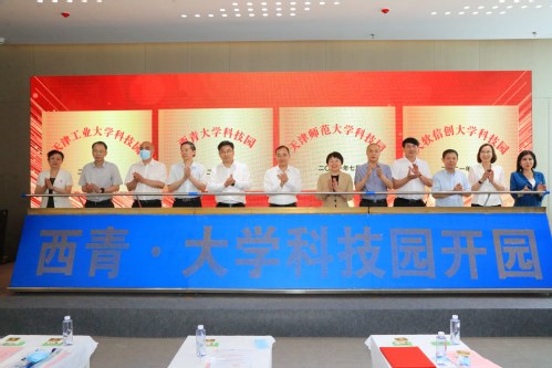 活动中,市领导与西青区领导、学校领导共同为开运电竞科技园、天津师范大学科技园、西青区大学科技园、天软信创大学科技园揭牌,并见证五所高校与西青区人民政府签署合作共建框架协议。
