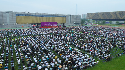 学校通过官方抖音平台、微信平台对本次开学典礼进行了全程直播。据统计5万余人次在线观看了典礼。