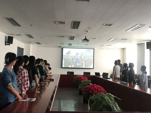 观看过程中,在我校各个会场的广大党员干部师生怀着崇敬、缅怀之情跟随视频中的仪式,为革命烈士沉痛默哀,深切缅怀为实现民族独立和复兴、为谋求人民解放和幸福、为创立新中国和建设新中国而英勇牺牲的革命烈士们。