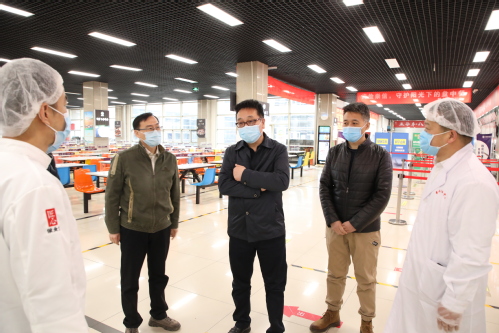 在西苑食堂,俞绍平书记详细询问了食堂的开放时间、可选菜品及疫情防控等相关工作情况,对食堂厨房卫生安全进行了检查,叮嘱工作人员落实疫情防控各项措施,为在校师生提供安全、周到、及时的用餐服务。在A区设备站,工作人员向校领导介绍了学校能源供应及站内设备运行情况,校领导对工作人员认真负责的精神表示肯定,勉励他们全力做好校园能源保障工作。在学校东门,校领导查看了疫情防控措施的落实情况,强调保卫处要加强校内公共场所和重点部位的巡查,守好校门,将校园安全工作关口深推前移,严格落实“四个一律”要求,将各项工作落实落细。