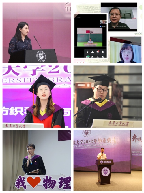 各学院毕业生代表在发言中动情诉说了对母校感恩与不舍之情,表达了对学院、老师悉心栽培的诚挚谢意,畅谈了大学生活的体会与收获。他们深情回顾了在天工沃土上不断奋斗成长和超越自我的美好时光,分享了自己在学习、科研、竞赛、支教、求职等方面的经验,表达了作为新时代青年,定将传承天工精神、肩负历史使命,为实现中国梦贡献青春和智慧的坚定决心。
