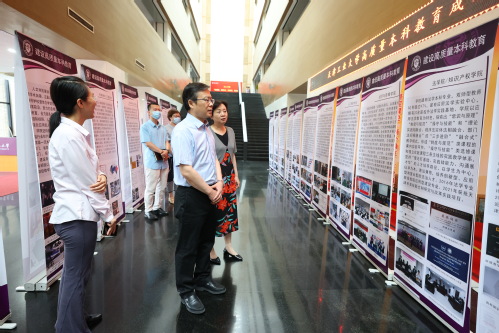 2022年7月4日至8日,开运电竞高质量本科教育成果展览在行政中心一楼大厅举行。校长夏长亮院士、常务副校长陈莉、市教委高教处处长徐震前往参观并指导工作。