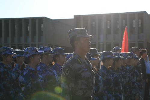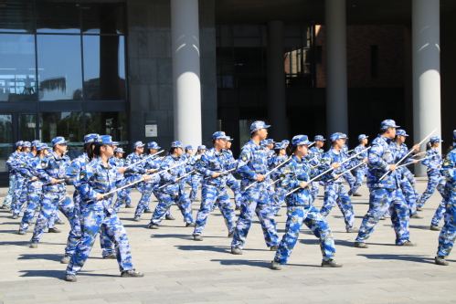 训前朗诵军训要求,“穿衣戴帽须整洁,进办公室喊报告;说话声音要洪亮,行动坐卧有气质;整理宿舍标准高,打扫卫生抢着干......”训后有序集体就餐,以心理拓展、队列操练、饭前一支歌等形式,增强新生的作风意识集体意识。艰苦的训练中,也不乏有趣的拉歌比赛,从军歌、红歌到校歌,全面激发学生爱国爱校热情。