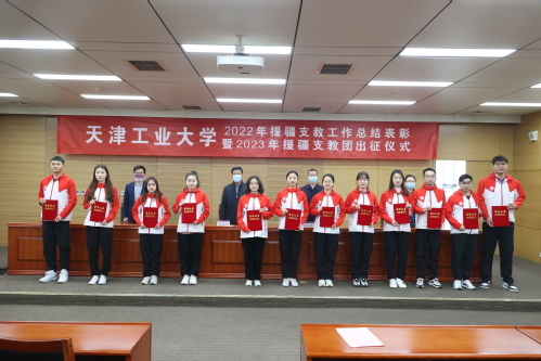 仪式最后,胡英江副书记向援疆支教团授旗,鼓励大家在支教期间坚守初心、坚定信念,牢记学校的期望和重托,脚踏实地、勇担重任,续写支教光荣新篇章,为边疆教育事业发展和民族团结贡献“天工力量”。