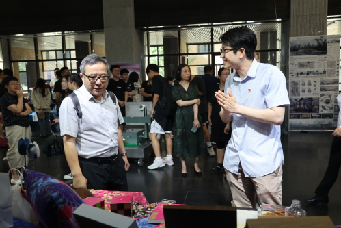 中国纺织服装教育学会会长倪阳生充分肯定了我校本科毕业设计(论文)工作。他指出,本次“新四科”本科毕业设计(论文)项目成果展搭建了师生跨学科融合学习和实践的空间,是学校人才培养新模式改革创新的生动体现,必将推动本科教育教学水平再上新台阶。