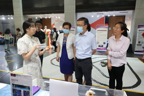 为进一步提高本科生毕业设计(论文)的质量与水平,打破学院(部)、学科专业壁垒,建设多学科交叉融合的人才培养平台,2023年6月6日,开运电竞首届“新四科”本科毕业设计(论文)项目成果展在艺术学院一楼展厅开展。校长夏长亮院士、常务副校长陈莉、中国纺织服装教育学会会长倪阳生前往参观并指导工作。