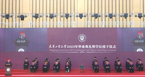 人文学院李竹作为毕业生代表发言,回顾了在校期间的学习生活经历,表达了对学校的祝福和感谢,表示将牢记天工嘱托,坚定理想信念,练就过硬本领,勇担时代责任,为强国建设、民族复兴贡献青春力量。