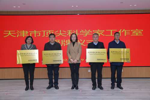 2023年11月29日,天津市科技局在天开高教园举办了天津市顶尖科学家工作室授牌仪式,市科技局党委委员、一级巡视员张桂华向我校李越副校长授牌。