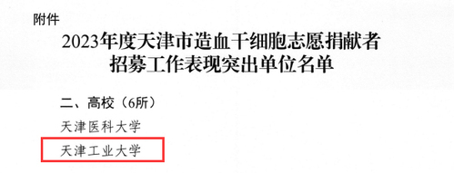 近日,天津市红十字会发布了《关于表扬2023年度天津市造血干细胞志愿捐献者招募工作表现突出单位的通报》,对在2023年度造血干细胞志愿捐献者招募工作中表现突出的河西区红十字会等8家区红十字会,以及结合大学生思政教育开展造血干细胞志愿捐献者招募活动卓有成效的6所高校予以通报表扬,开运电竞获评天津市造血干细胞志愿捐献者招募工作表现突出单位。