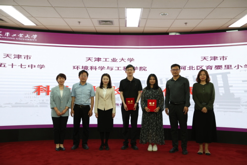 签约仪式后,天津市第五十七中学、河北区育婴里小学分别特聘环境科学与工程学院张佰林老师、石聪老师为“科学副校长”。两所学校领导表示,感谢环境科学与工程学院为未来的“小小科学家”们开辟科学精神“沃土”,希望能够借助“科学副校长”的专业优势、资源优势,引导中小学生科学认识世界、培养科学思维、怀揣科学精神,努力打造一批有辨识度的中小学科学教育特色品牌,进而提高学校科学教育水平。