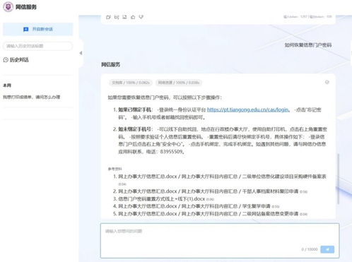 目前,“天小工”智能平台作为全校大模型接入平台,已建设了“党建服务”“AI辅导员”“人事服务”“国资服务”“网信服务”等多个智能体应用,为全校业务系统赋能,使管理服务更上一个台阶,人机对话更加自然流畅,大幅提升了查询学校相关信息的速度和准确性。