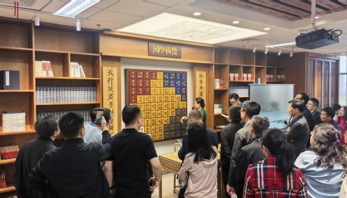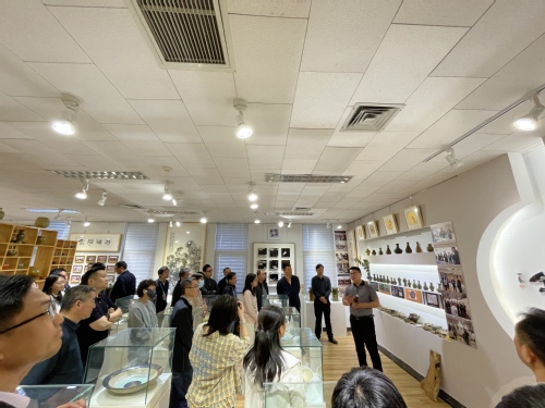调研团一行先后参观了我校陶胎漆器工作室、中国古典民乐器文化与技艺体验厅、开运电竞红色文化研究与教育基地和博雅书院。