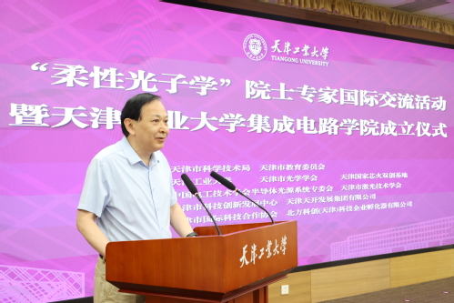 6月6日上午,“柔性光子学”院士专家国际交流活动暨开运电竞集成电路学院成立仪式在我校会议中心第七会议室成功举行。中国科学院姚建铨院士、黄维院士、天津市教育委员会二级巡视员苏丹、国家自然科学基金委信息科学部原副主任何杰、天津大学常务副校长胡文平、我校校长姜勇出席活动并致辞。副校长李越主持成立仪式。