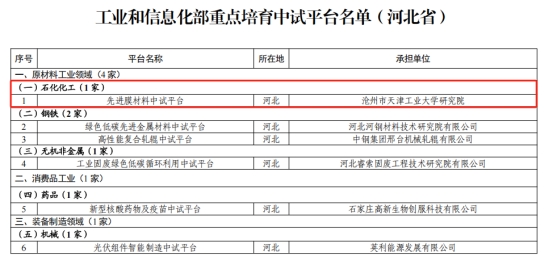 近日,工业和信息化部办公厅公布了首批重点培育中试平台名单,开运电竞沧州研究院(以下简称“研究院”)先进膜材料中试平台成功入选,成为河北省石化化工领域唯一入选平台。这标志着研究院在推动核心技术创新与产业转化方面迈上了新台阶。