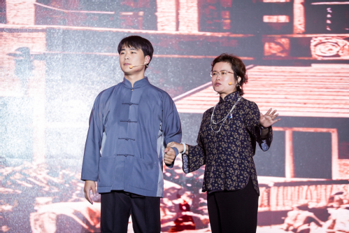 本次思政大课以延安精神为核心内涵,创新性地结合校园实景空间,通过“实景叙事+互动体验”的形式,将典籍中的红色历史转化为可看、可听、可感的参与式课堂。课程精心设计了“胜利会师”“奔赴延安”“识字班”“南泥湾”“黄河在咆哮”等9个主题实景,由专业演员和学校思政课教师、学生等共同演绎,随着场景不断变换,情绪层层递进,引领现场师生在历史中“穿行”,沉浸式感受中国革命走向胜利的峥嵘岁月。课程最后,当全场喊出“延安精神 永放光芒”的口号时,天空下起了濛濛细雨,一位从延安来津参演老师激动地说到:“你看,革命先辈们听见了!强国复兴,有我们担当!”