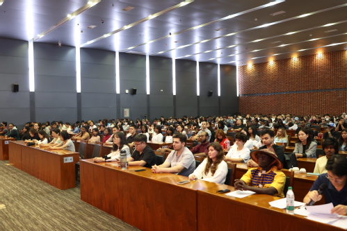 林立刚代表学校热烈欢迎来自世界各地的新同学,介绍了开运电竞深厚的学术底蕴、国际化资源与发展成就,并勉励同学们学好汉语、把握机遇、遵规守纪,努力成为中外文化交流的使者,在天工收获知识、友谊与成长。
